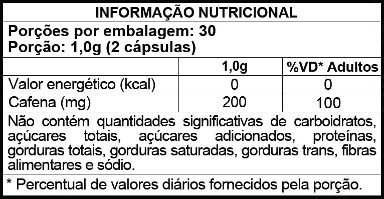 Precauções: Este produto não deve ser consumido por gestantes, lactantes e crianças, exceto sob supervisão médica. Indicado para grupo populacional maior ou igual a 19 anos;