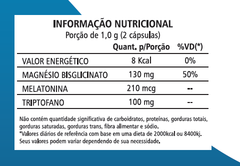 Composição: Magnésio Bisglicinato, Melatonina e Triptofano;