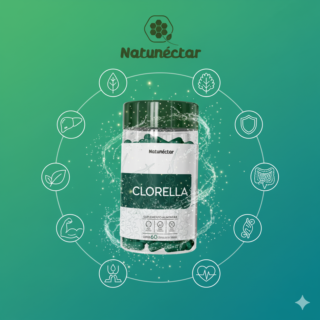 Composição: Clorella em pó; Excipientes: Estearato de Magnésio; Antiumectante: Silicato de Magnésio e Dióxido de Silício;