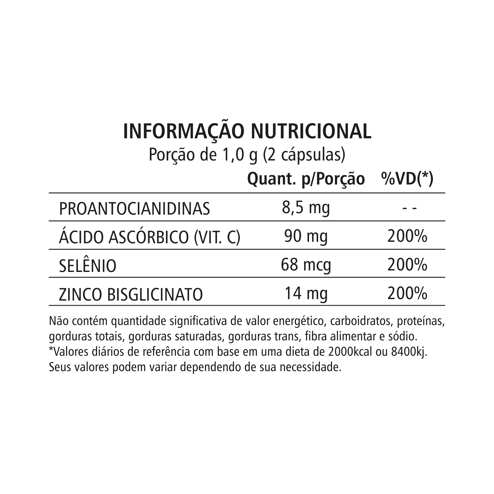 Composição: Cranberry em pó, Selênio, Zinco;