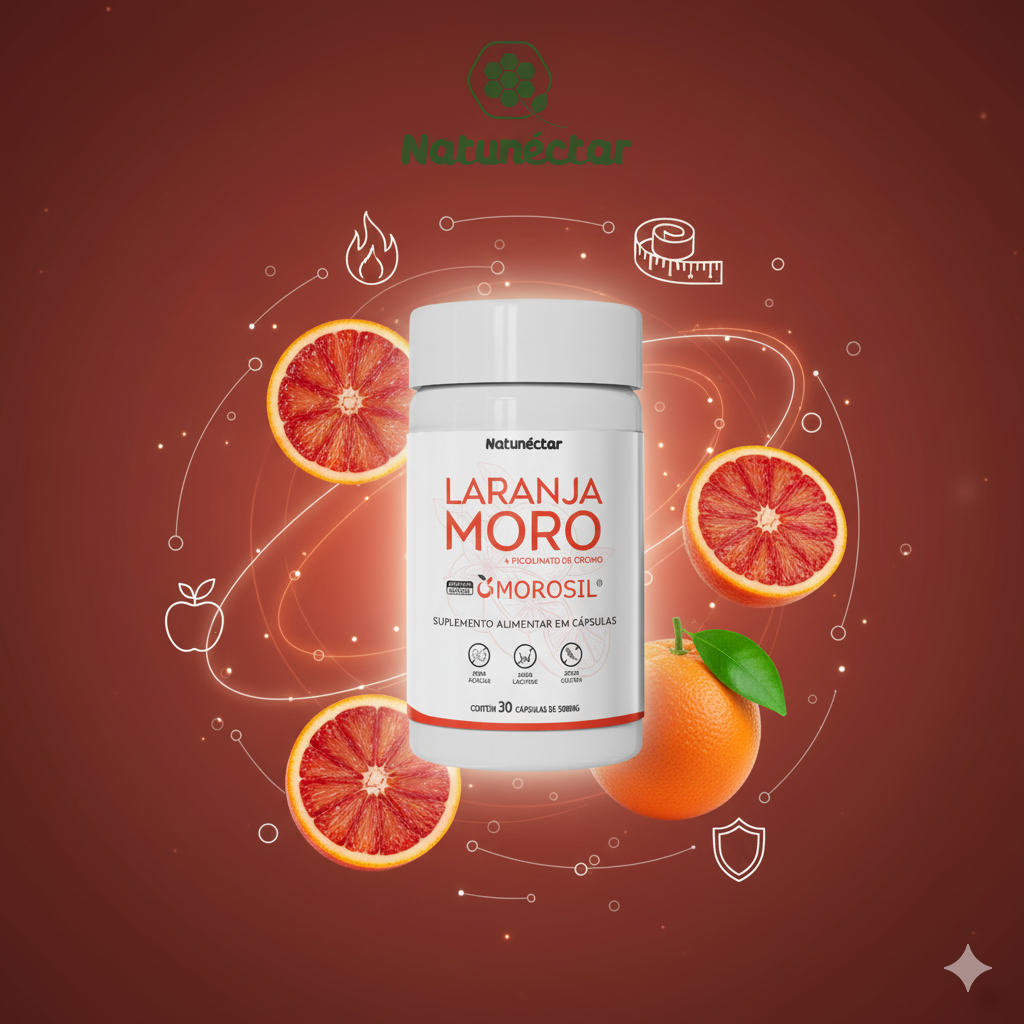 Composição: Laranja Moro (Morosil), Psyllium, Picolinato de Cromo, Ácido Ascórbico (Vit. C); Excipientes: Estearato de Magnésio e Silicato de Magnésio; Antiumectante: Dióxido de Silício;