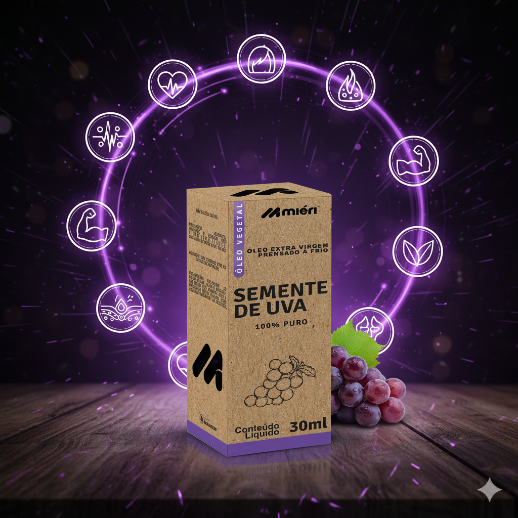 Composição: Óleo extra virgem prensado a frio de Semente de Uva;