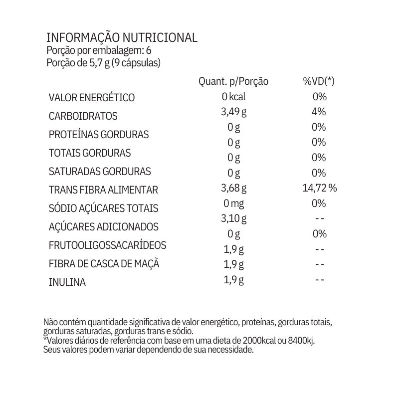 Composição: Frutooligossacarídeos, Fibra de Casca de Maçã, Inulina;