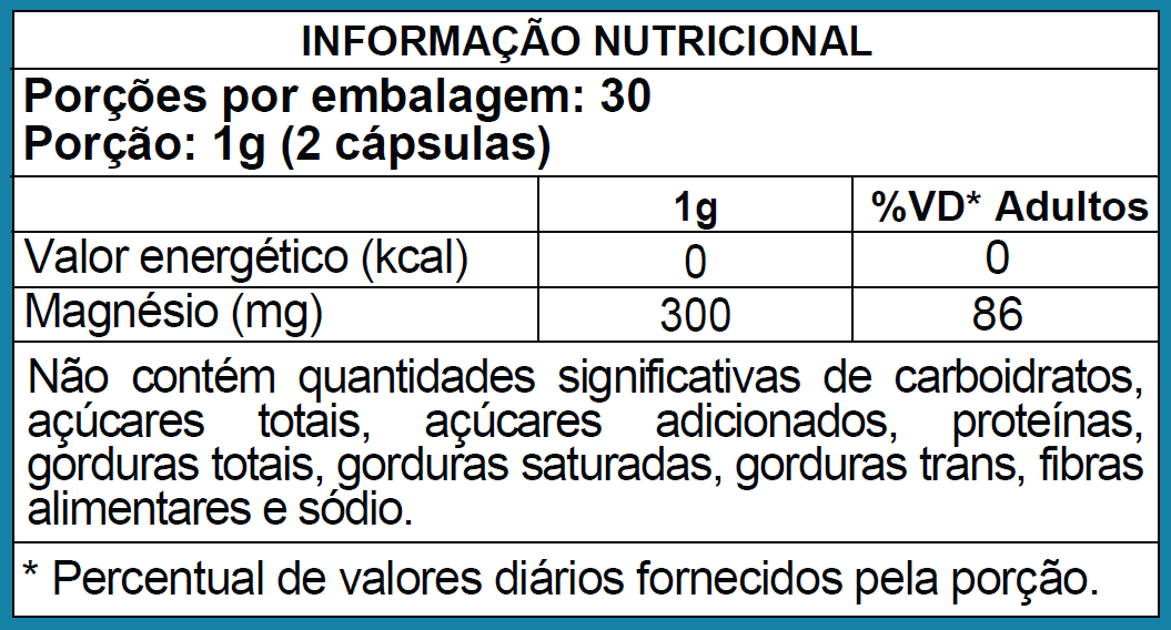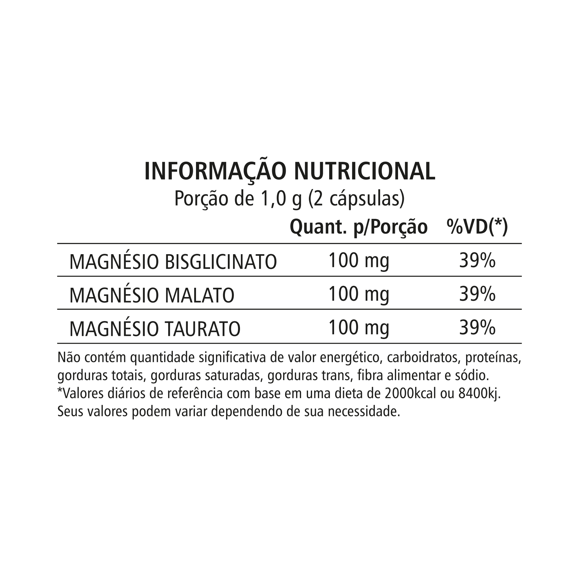 Composição: Bisglicinato de Magnésio, Malato de Magnésio e Magnésio Taurato;