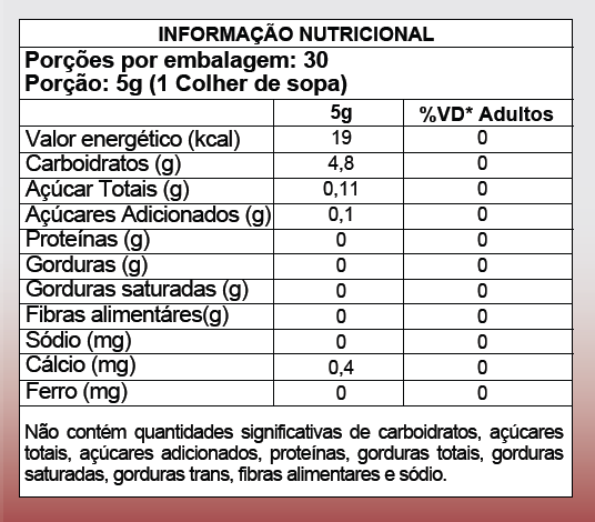 Sugestão de Uso: dissolver uma dose de 5g (ou uma colher de sopa) na bebida de sua preferência; Não é necessário adoçar;