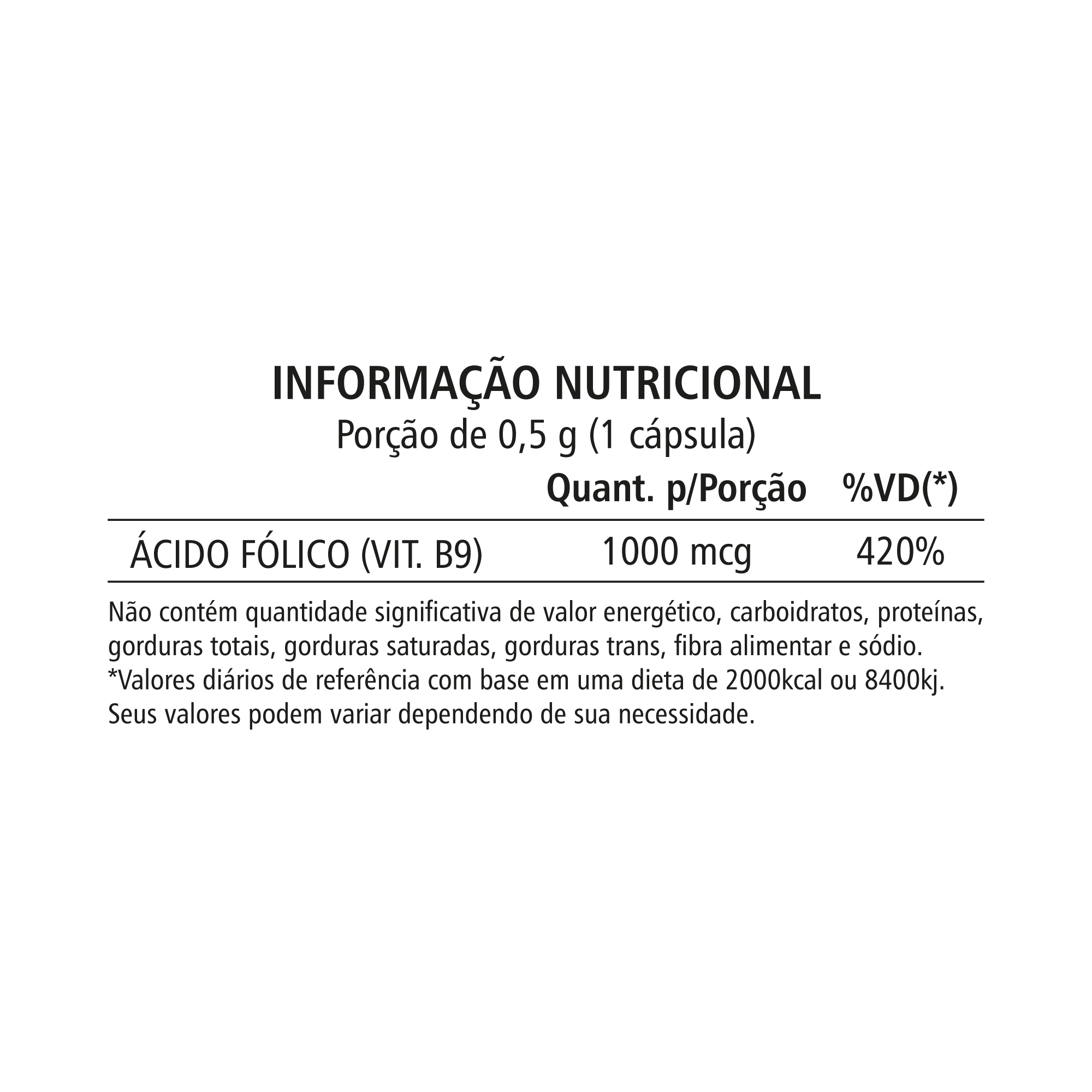 Composição: Ácido Fólico. Excipientes: Estearato de Magnésio (lubrificante). Antiumectante: Silicato de Magnésio, Dióxido de Silício;