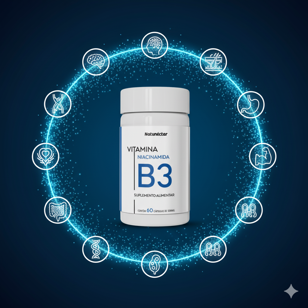 Composição: Niacinamida. Excipientes: Estearato de Magnésio (lubrificante). Antiumectante: Silicato de Magnésio, Dióxido de Silício;